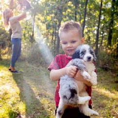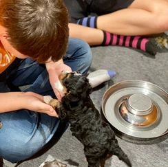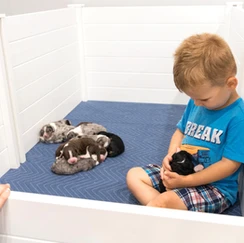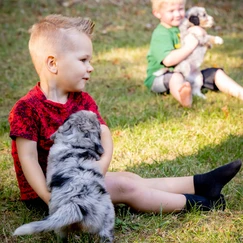 Puppy Parties – help the puppies to engage confidently with humans and enjoy activities with humans, we routinely bring toddlers to teens in to spend time and play with our puppies and get them acclimated to all age groups.